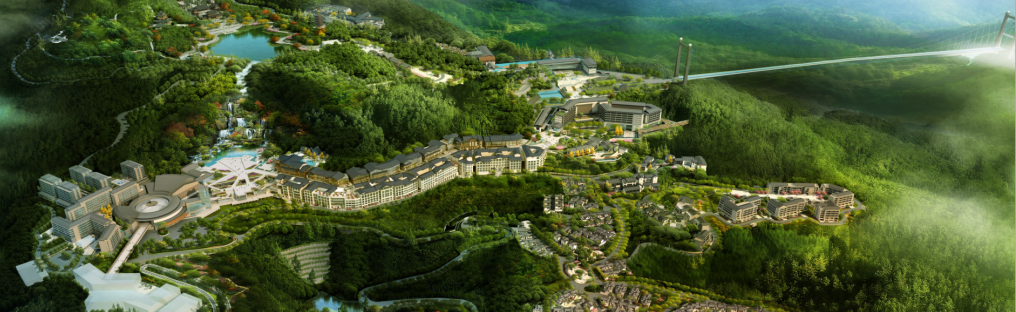 在越龙山国际旅游度假区,同样也是藏“龙”卧“虎”。越龙东城的花语天街,俯瞰宛如一条蜿蜒盘旋的龙:龙头在瀑布广场处,悠然戏水;龙尾正是玻璃悬索桥,自在摆尾。